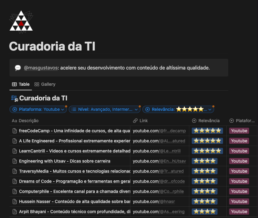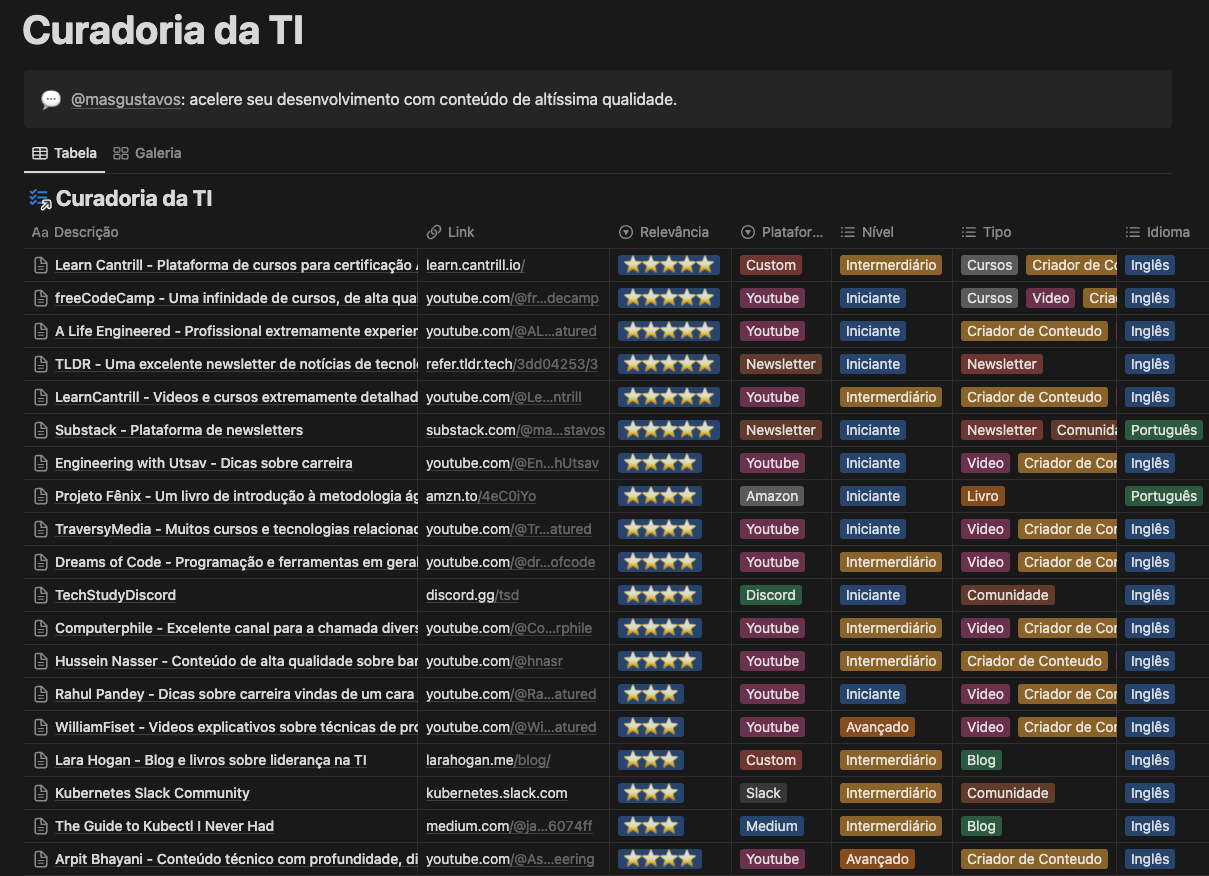 Esse é o banco de dados que uso como referência para compartilhar criadores de conteúdo, sites, blogs e qualquer outra coisa que acho útil pra quem trabalha com tecnologia.