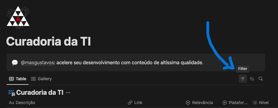 ✅ Para isso eu criei a Curadoria da TI: